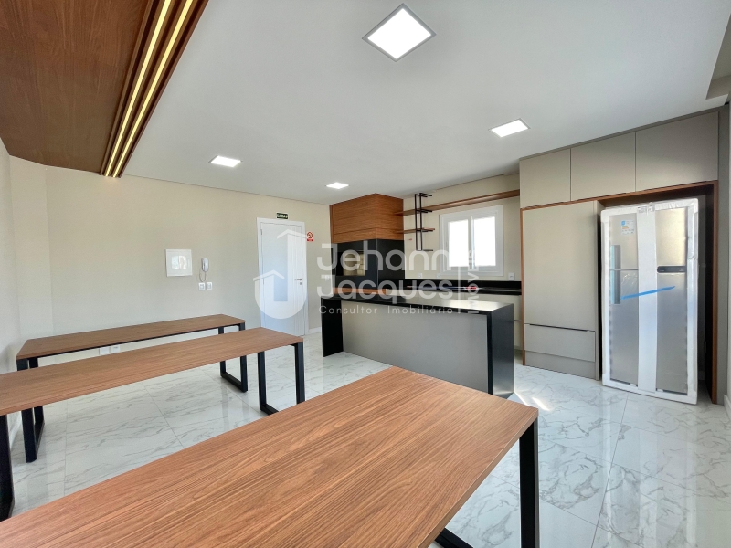 Os apartamentos contam com espera para split em todos os ambientes, medidores individuais de água, luz e gás, piso em porcelanato, esquadrias internas e externas em PVC e acabamento em pastilhas. O condomínio oferece elevador, hall de entrada em porcelanato polido, salão de festas mobiliado e decorado, rooftop e calçada em basalto.
